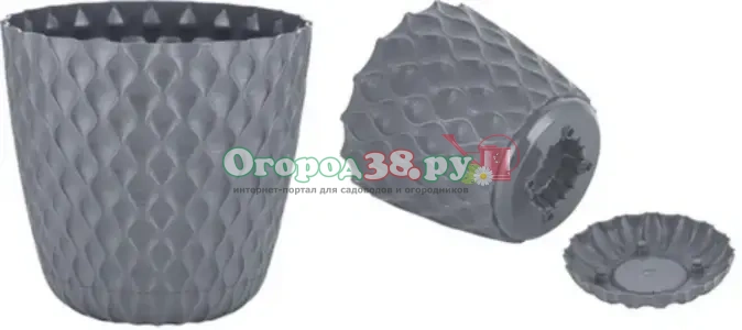 Кашпо Wave d14,5; h13,2см 1,4л с дрен сеткой+поддон Вулканический серый