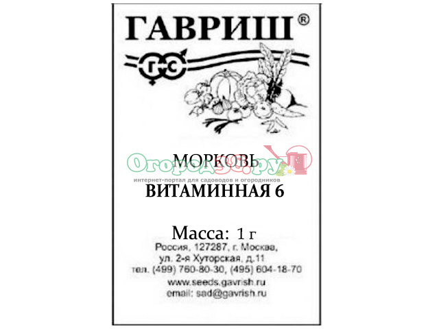 Морковь Витаминная 6 1г (Уд.с.) Б/П, шт