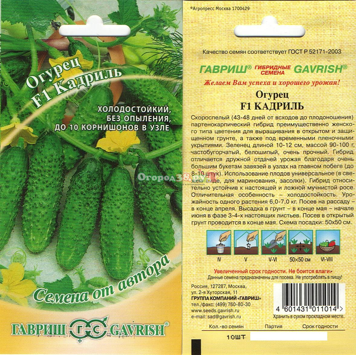Огурец Кадриль F1 10шт (п/к, ран, корнишон) (автор)