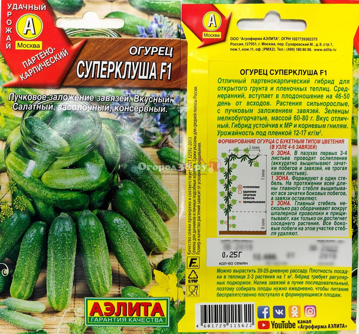Огурец Суперклуша F1 10шт (п/к, ран, пучк)