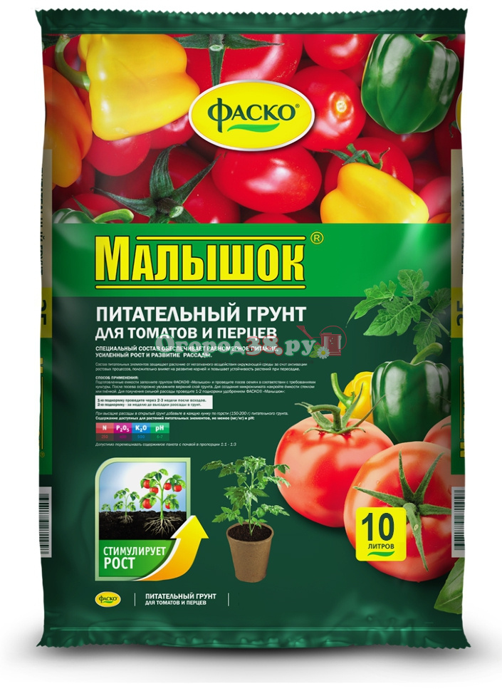 Грунт Малышок 10л томаты, перцы 5/175шт/уп