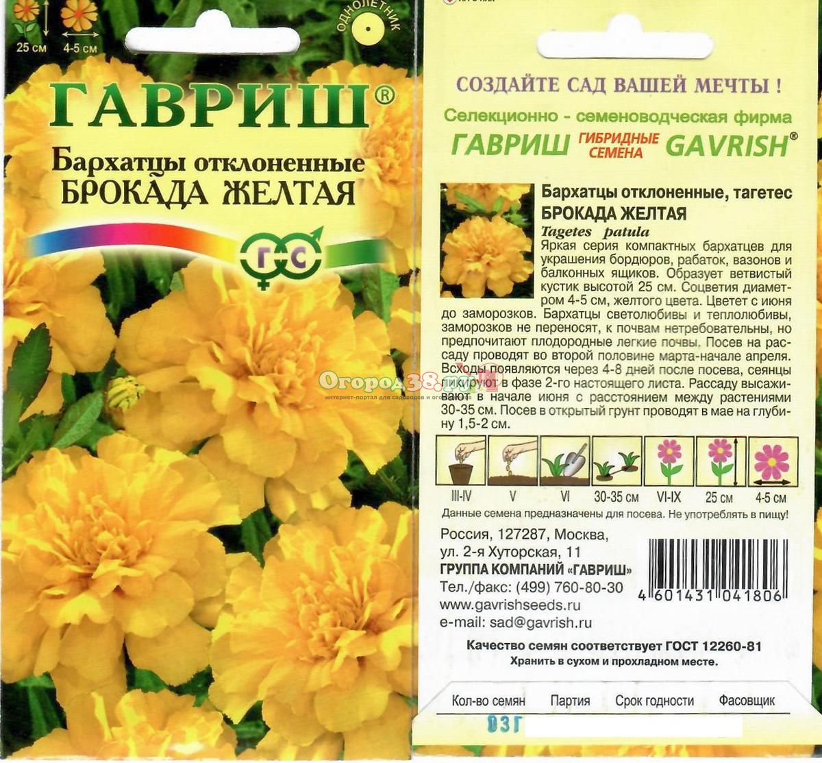 Бархатцы Брокада желтая отклоненные 0,3г 25см