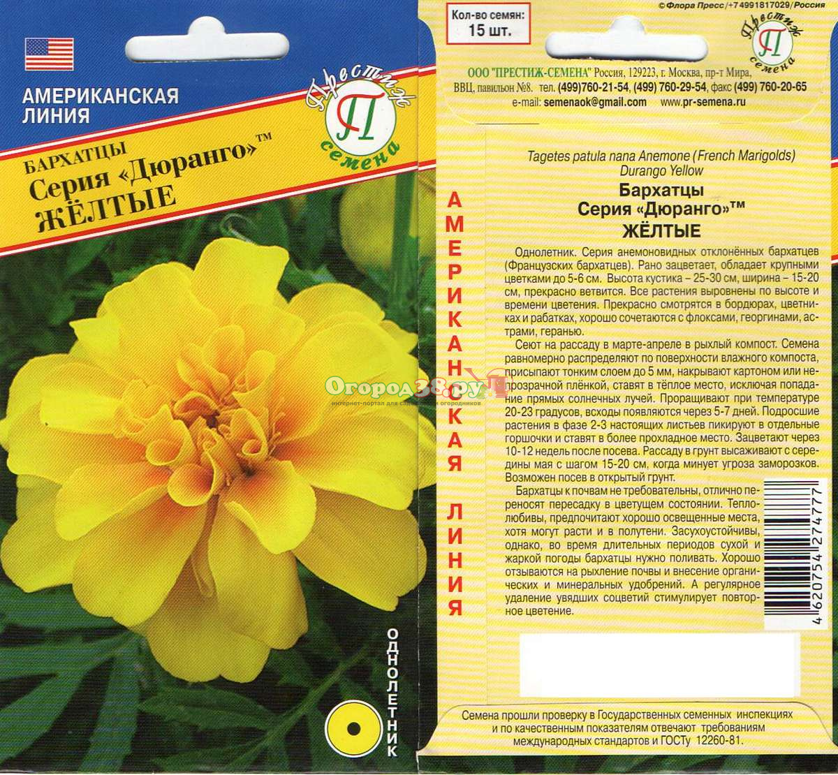Бархатцы Дюранго Жёлтые 10шт