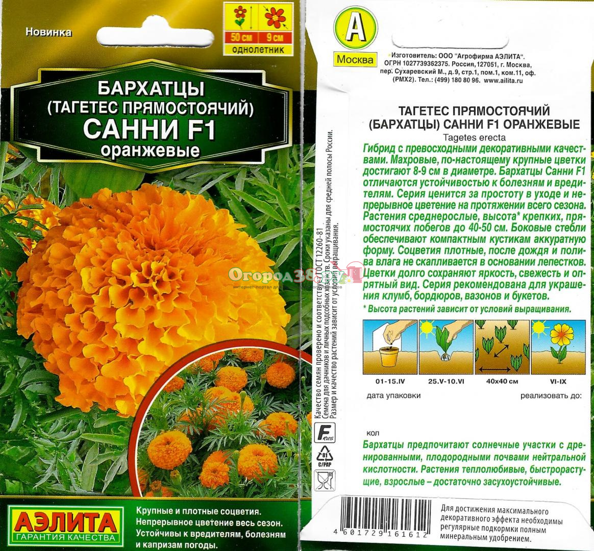Бархатцы Санни F1 оранжевые прямостоячие 10шт 50см