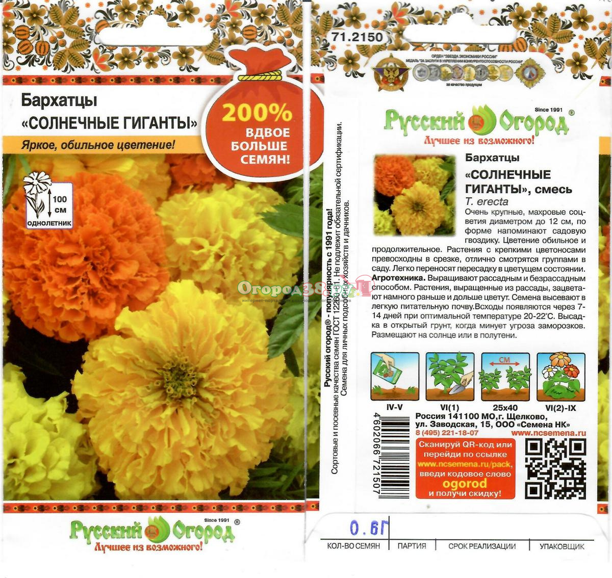 Бархатцы Солнечные гиганты 0,6г Смесь (100см) 200%