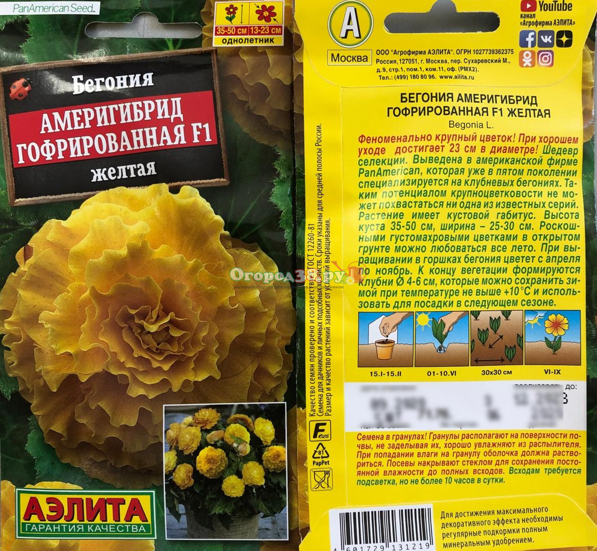 Бегония Америгибрид гофрированная F1 5шт Желтая