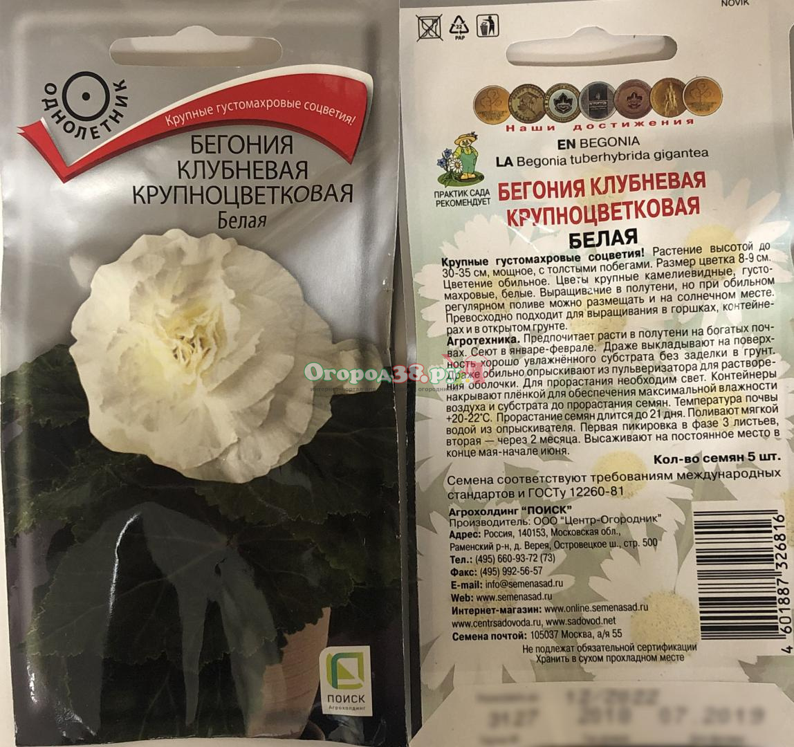 Бегония Белая клубневая крупноцветковая 5шт