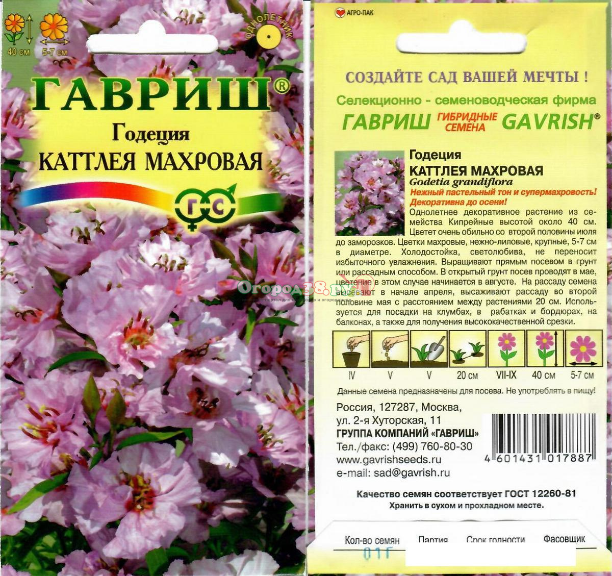 Годеция Каттлея 0,05г лиловая (махровая, 40см) (Устойчив к заморозкам!)