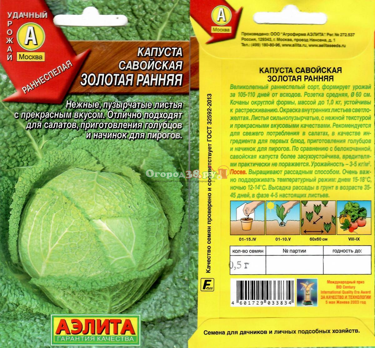 Капуста савойская Золотая ранняя 0,5г