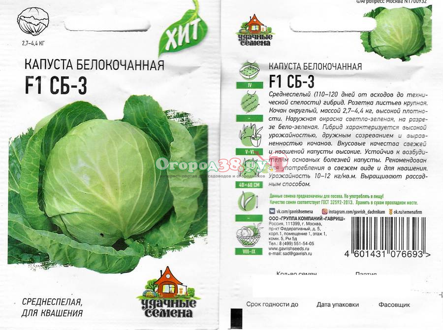 Капуста СБ-3 F1 0,1г ХИТ х3