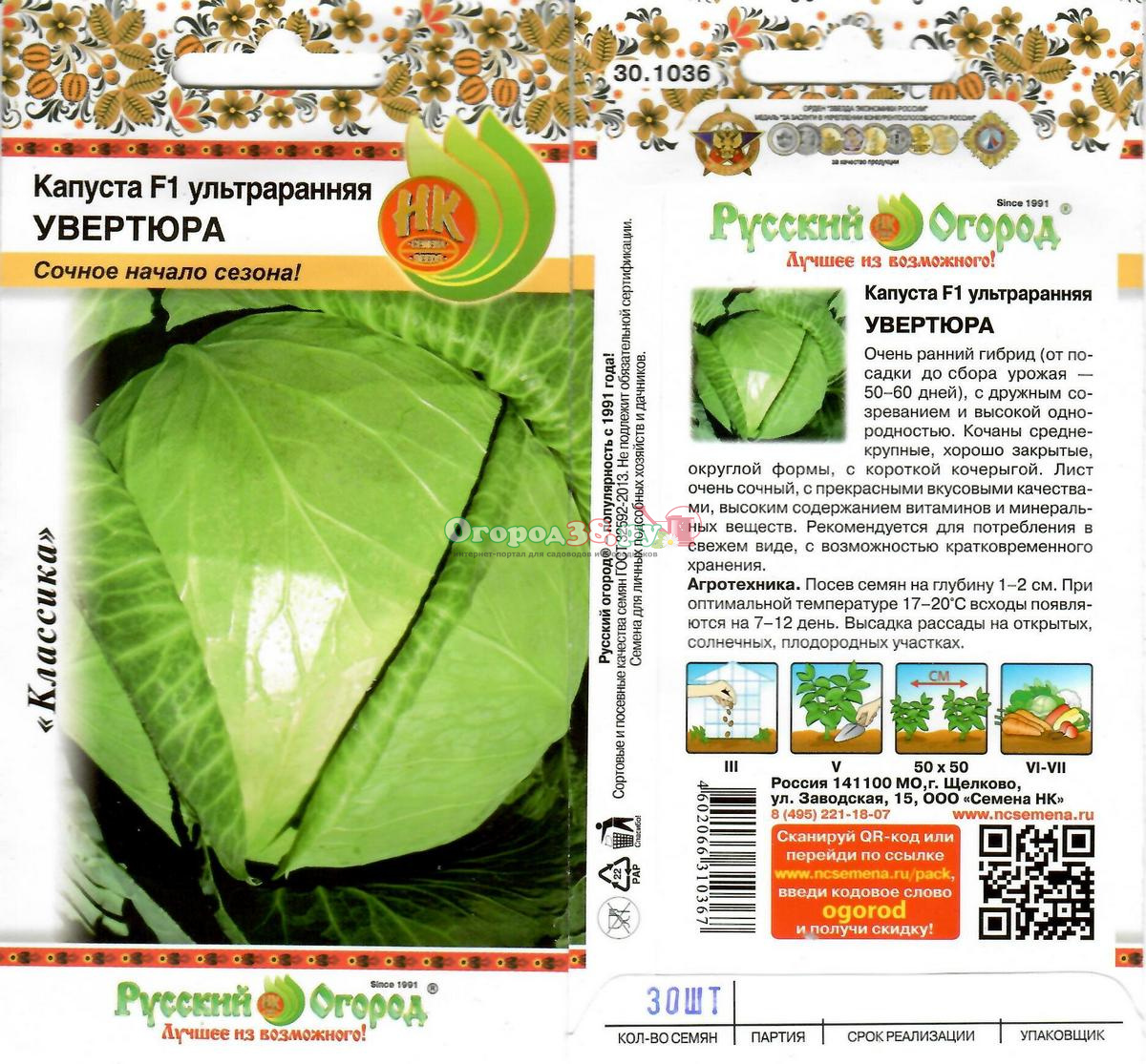 Капуста Увертюра F1 30шт (ультраранняя)