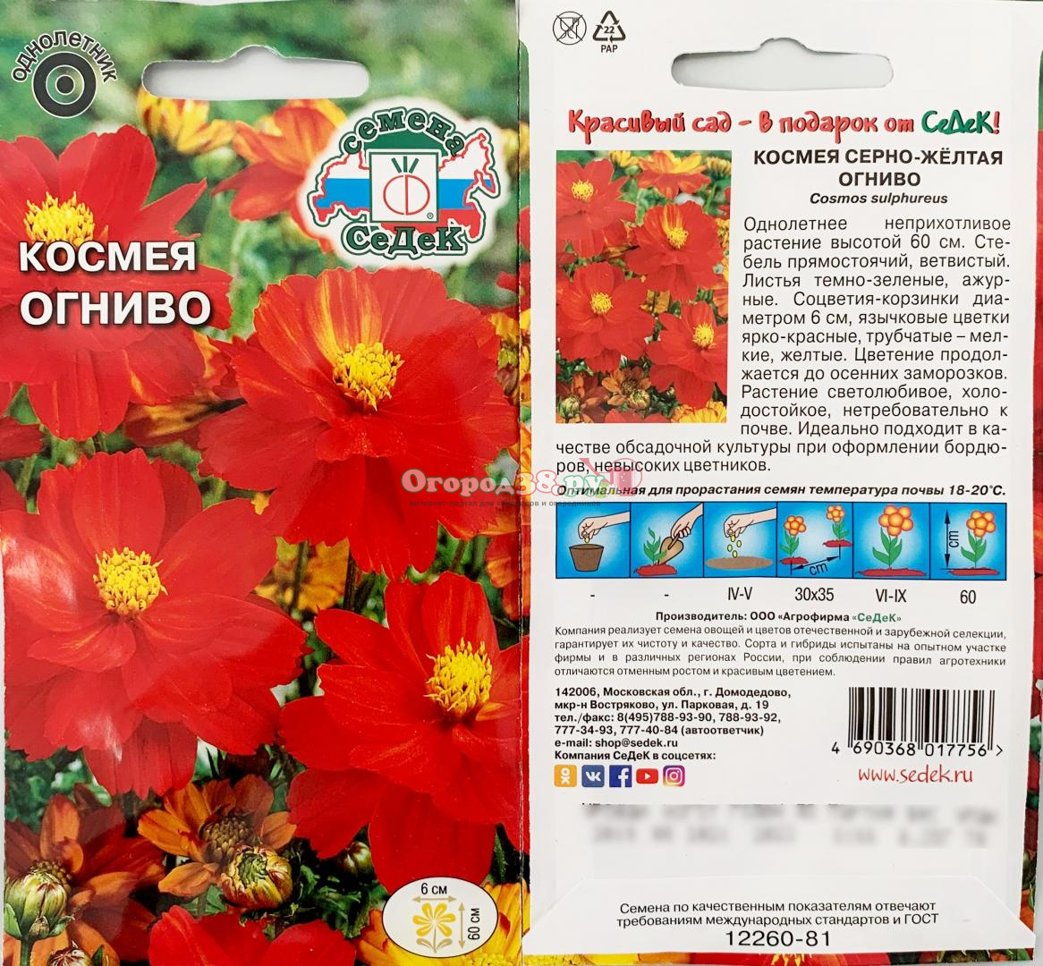 Космея Огниво (сульфуриус) 0,25г ярко-красная