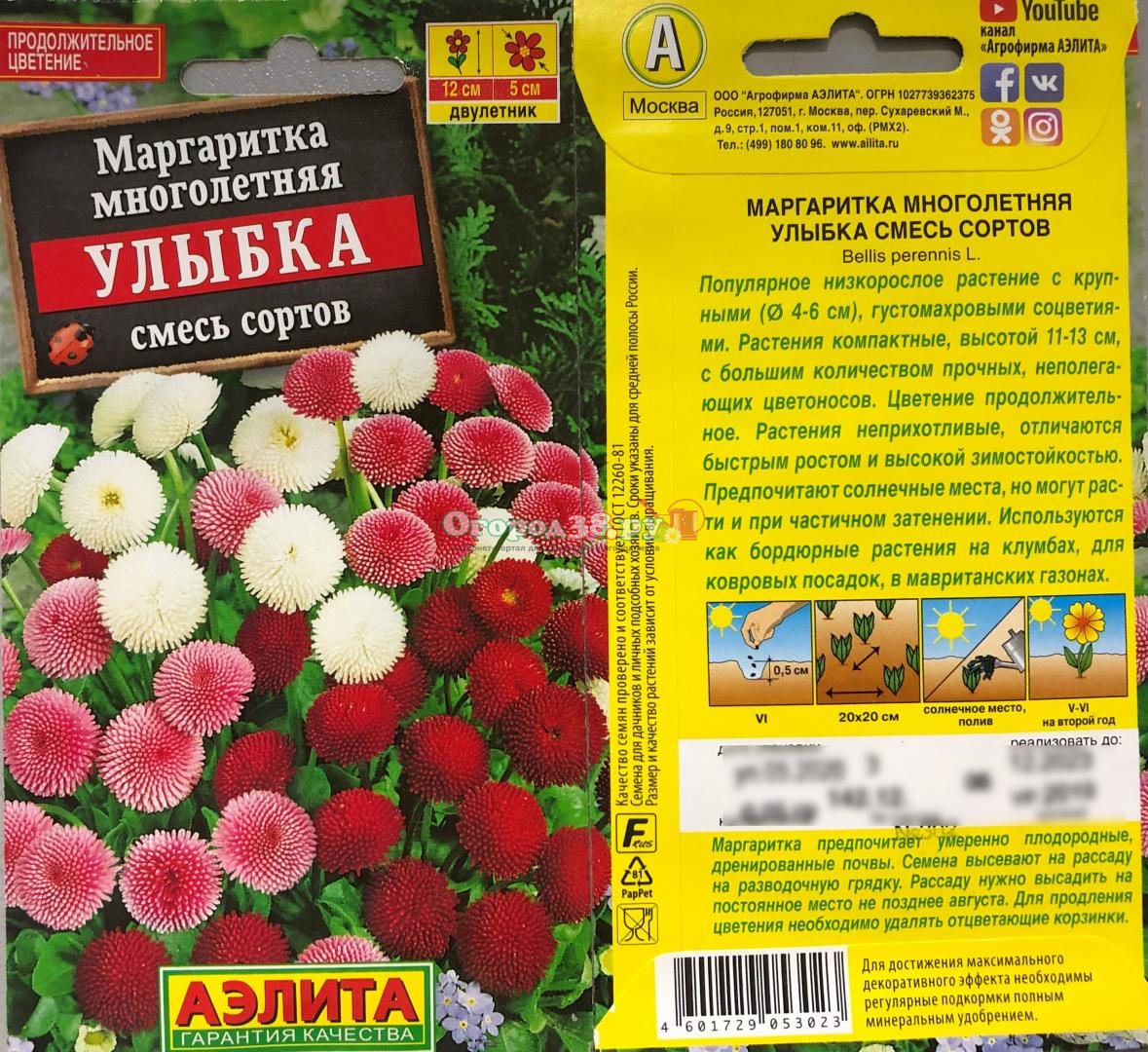 Маргаритка Улыбка 0,05г Смесь окрасок (махр, помпонная)