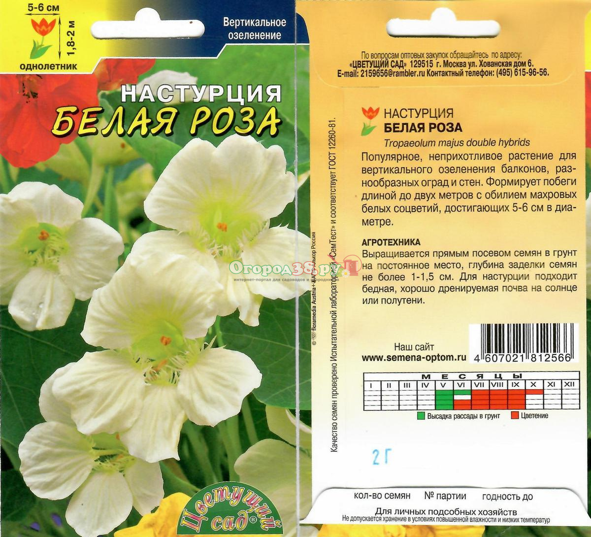 Настурция Белая Роза 2г вьющаяся