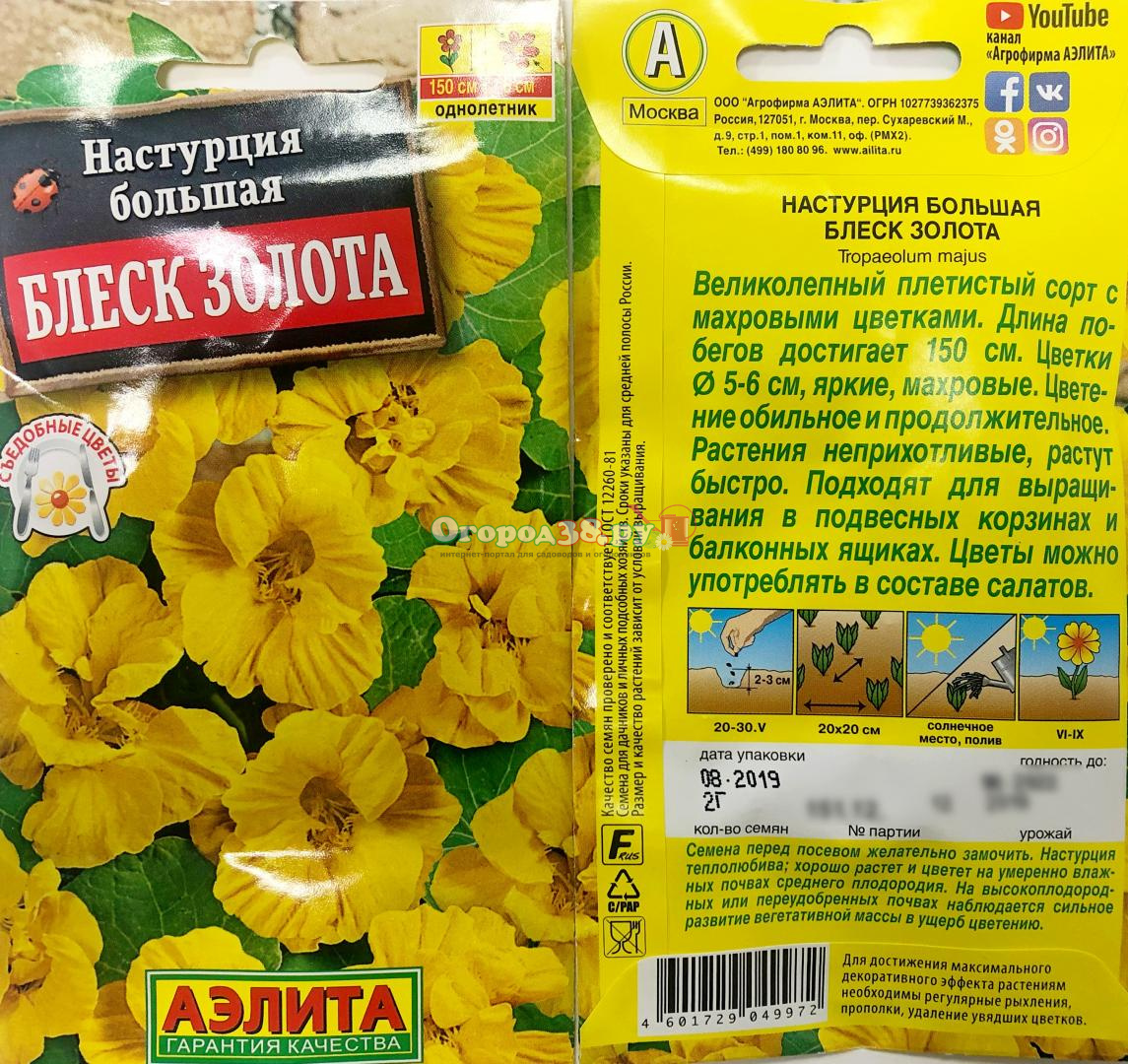 Настурция Блеск золота 2г. махровая 150см.,