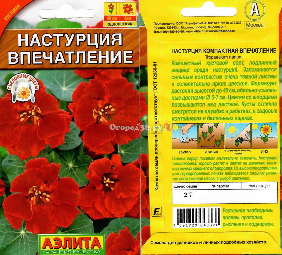 Настурция Впечатление 1г красная (40см)