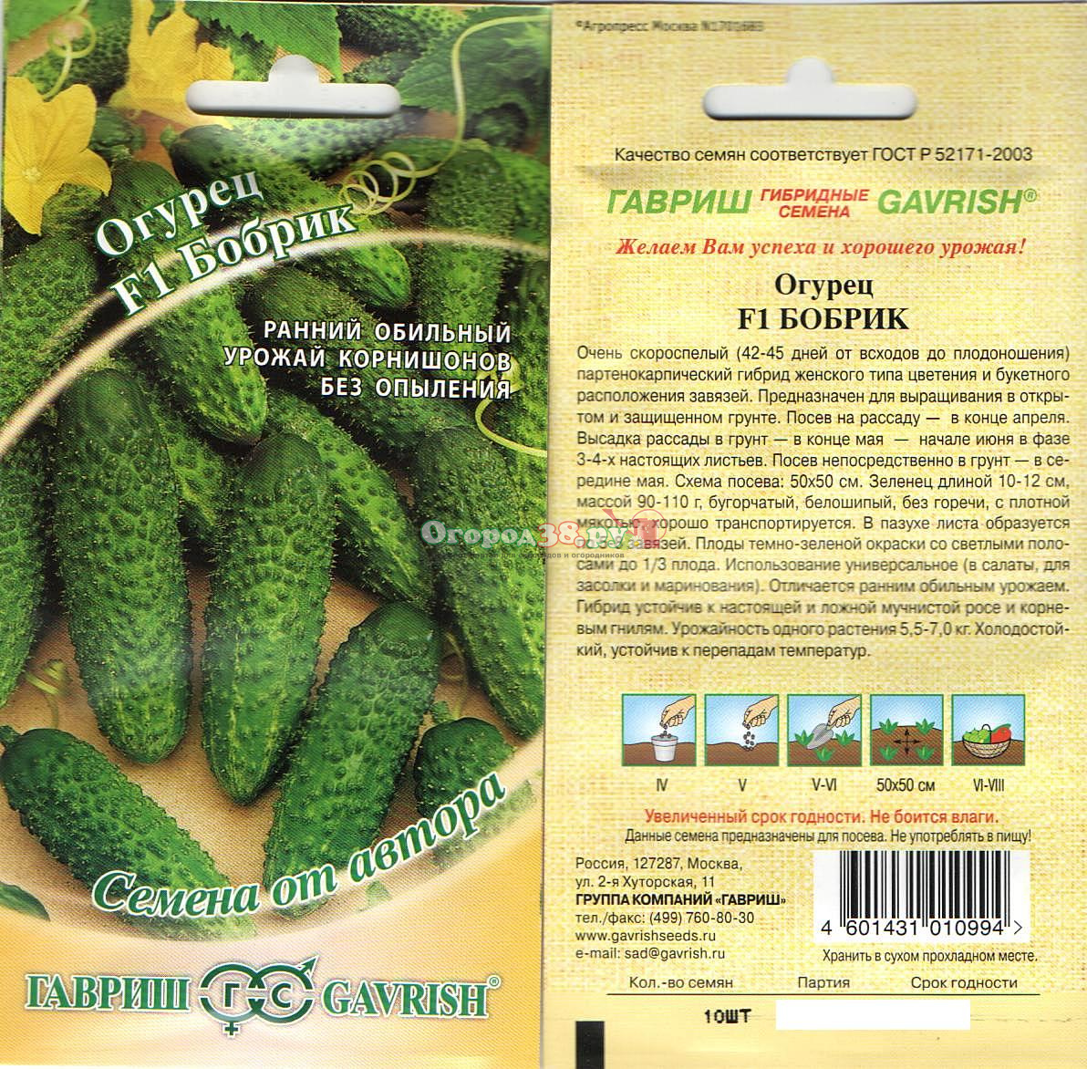 Огурец Бобрик F1 10шт (п/к, ран, корнишон) (автор)
