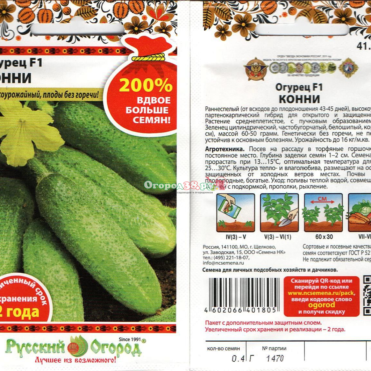 Огурец Конни F1 0,4г (п/к, ран) 200%