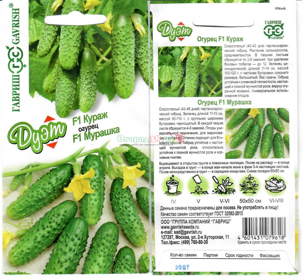 Огурец Кураж F1 10шт+Мурашка F1 10шт (автор) (Дуэт)