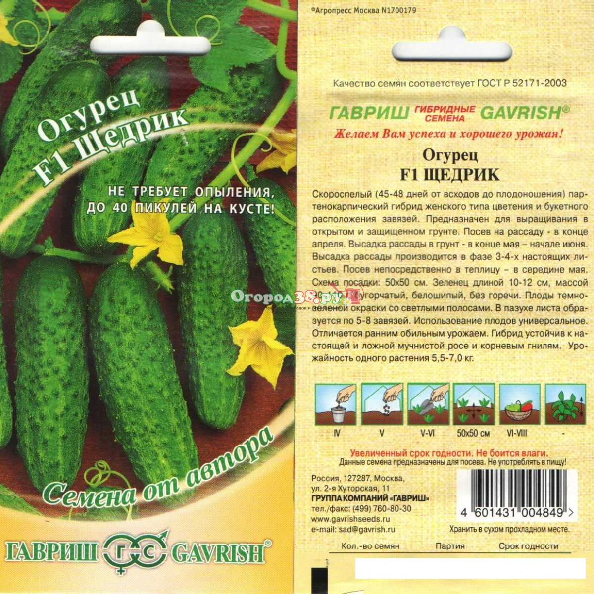 Огурец Щедрик F1 10шт (п/к, ран, пикуль) (автор)