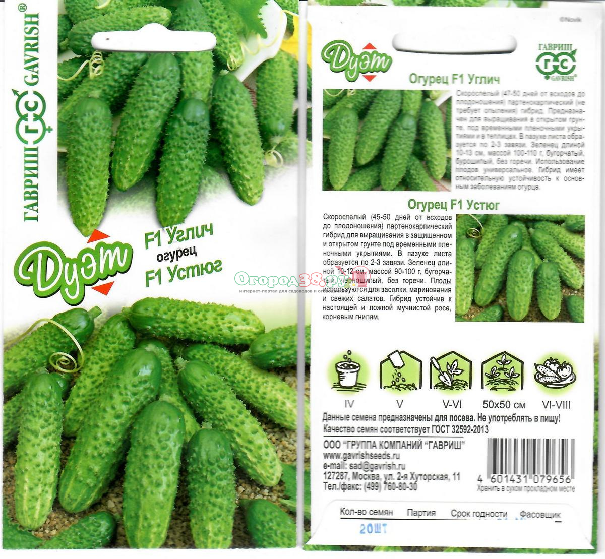 Огурец Углич F1 10шт+Устюг F1 10шт (Дуэт) (п/к, ран) (автор)