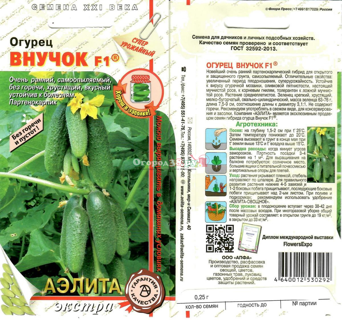 Огурец Внучок F1 10шт (п/к, ран)