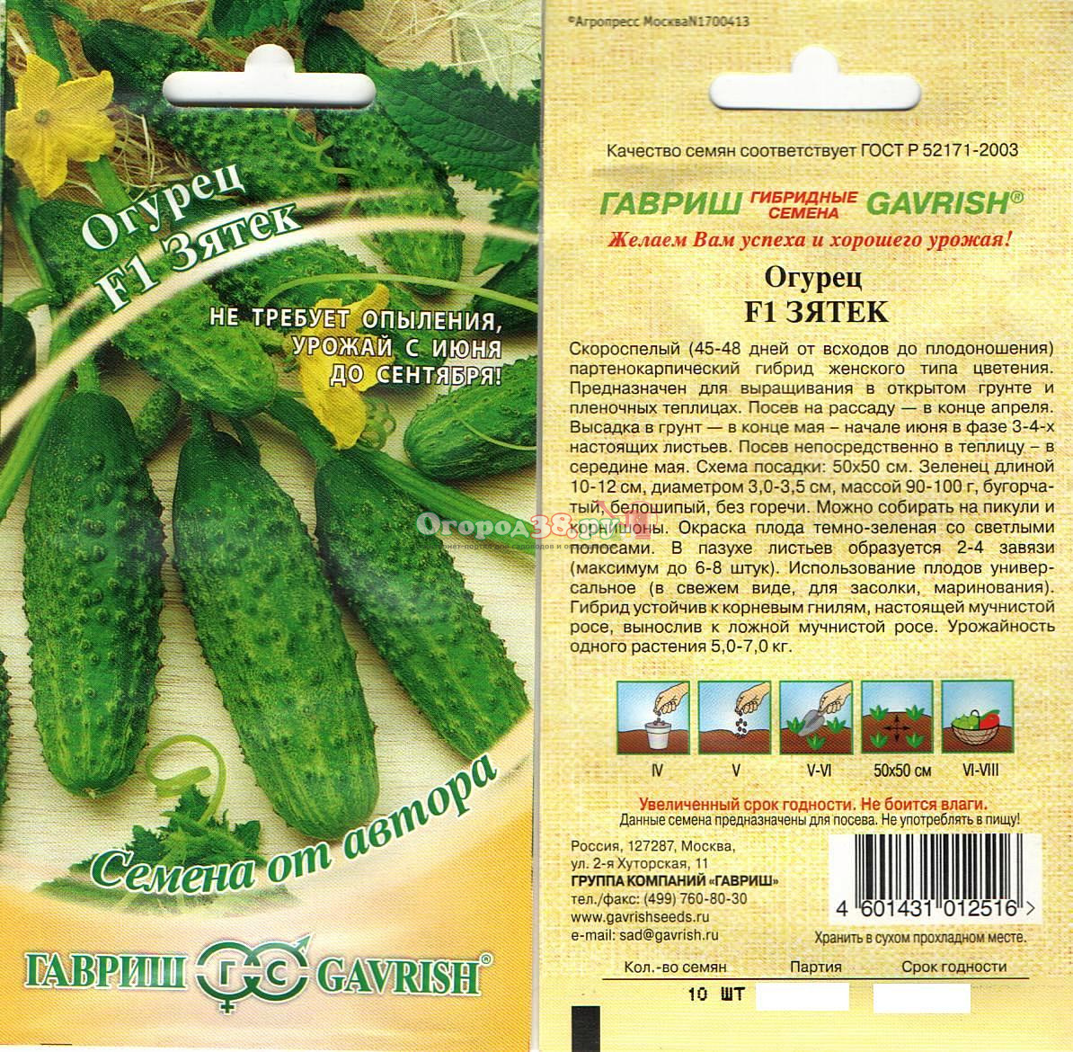 Огурец Зятек F1 10шт (п/к, ран) (автор)