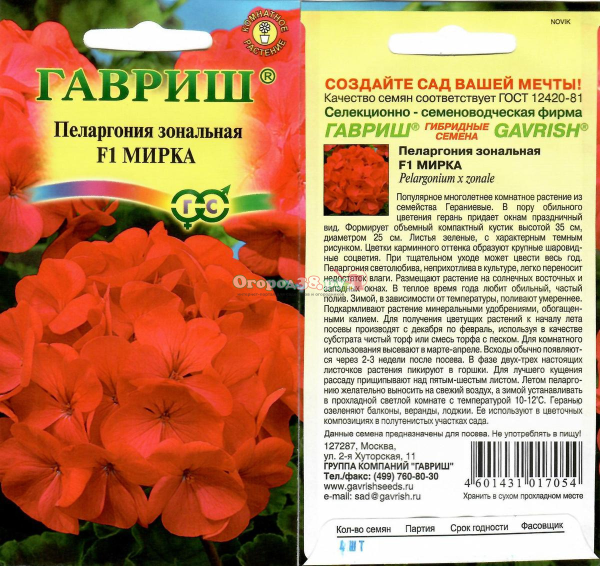 Пеларгония Мирка F1 зональная 4шт красная