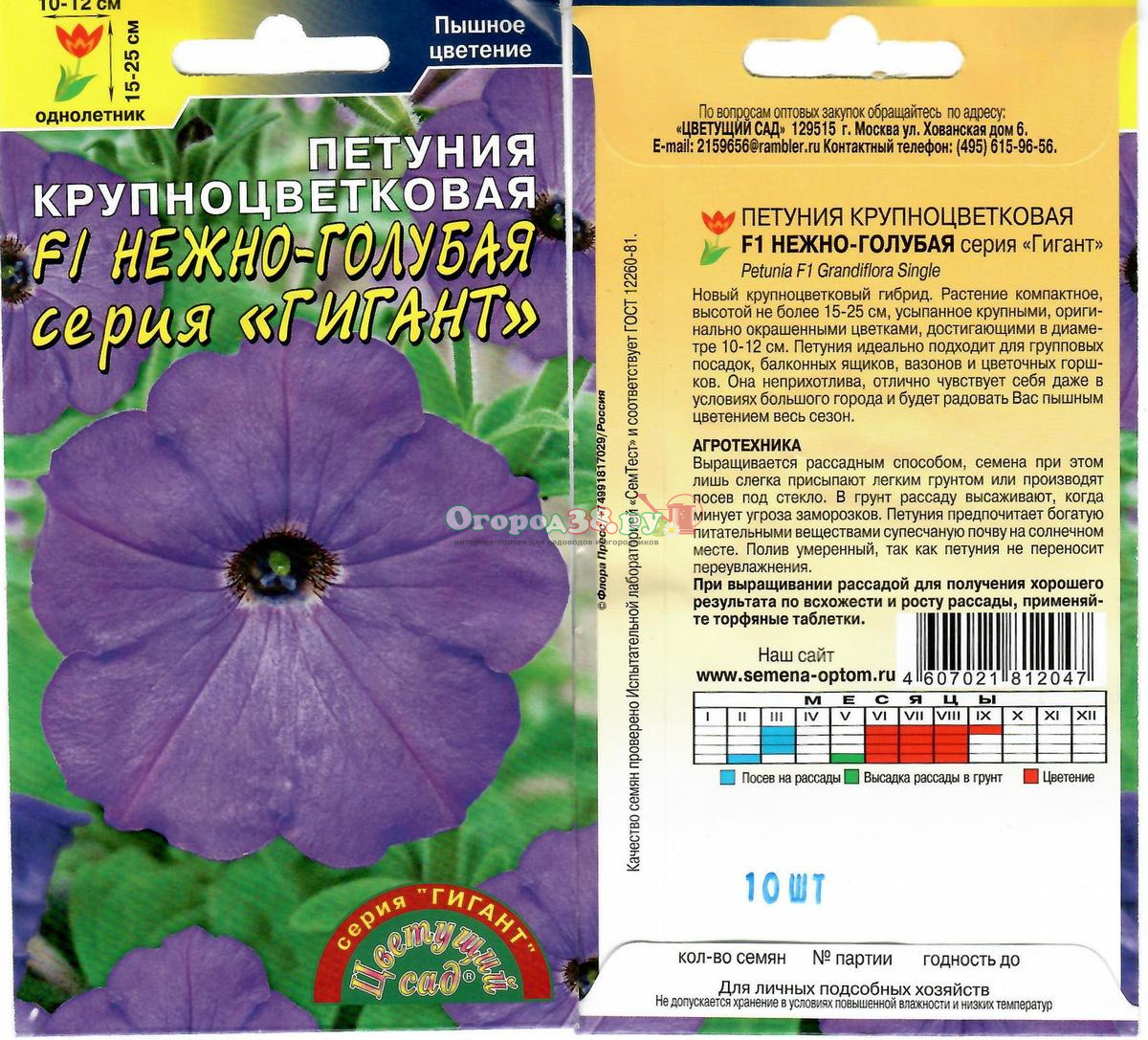 Петуния Гигант крупноцв Нежноголубая F1 10шт