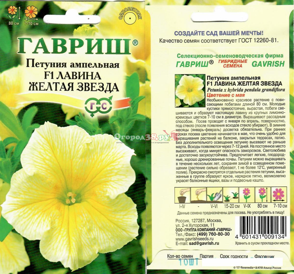 Петуния Лавина Желтая Звезда F1 7шт ампельная
