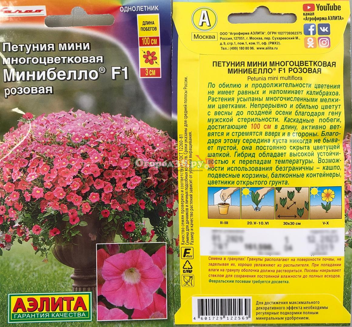 Петуния Минибелло мини F1 Розовая 5шт (многоцв) каскад.