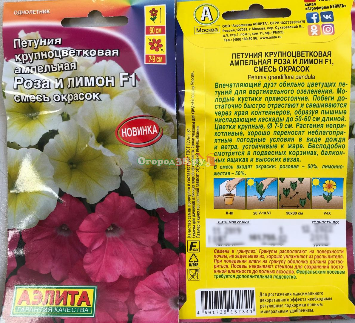 Петуния Роза и лимон F1 Смесь 7шт (крупноцв, ампельная)