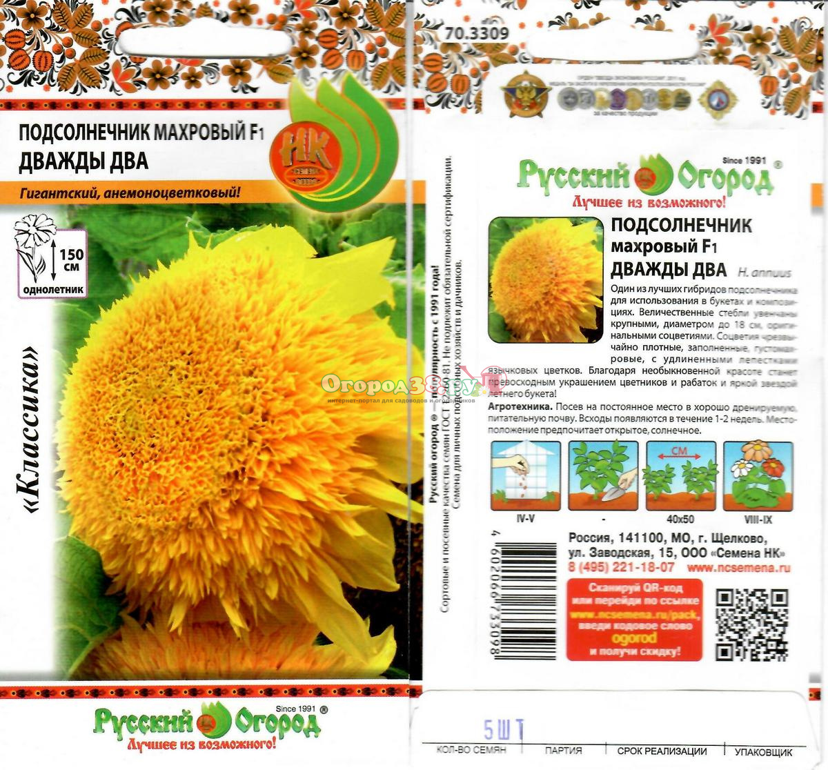 Подсолнечник Дважды Два F1 (махров), шт
