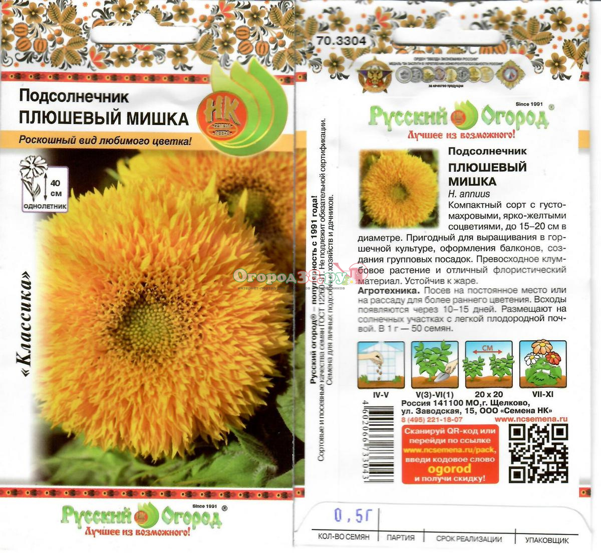 Подсолнечник Плюшевый мишка 0,5г (махр, 40см)