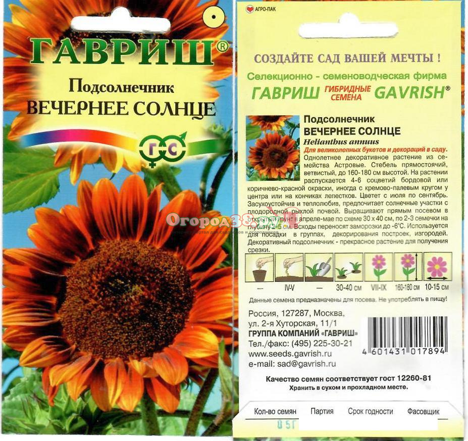Подсолнечник Вечернее солнце 0,5г 180см