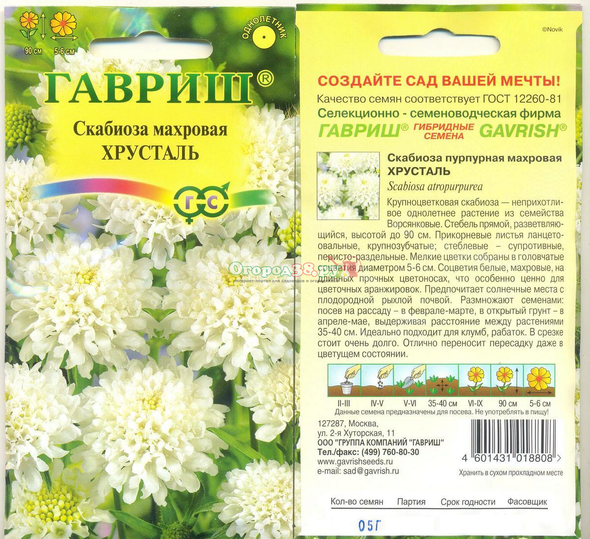 Скабиоза Хрусталь 0,2г махр белая (Устойчив к заморозкам!)