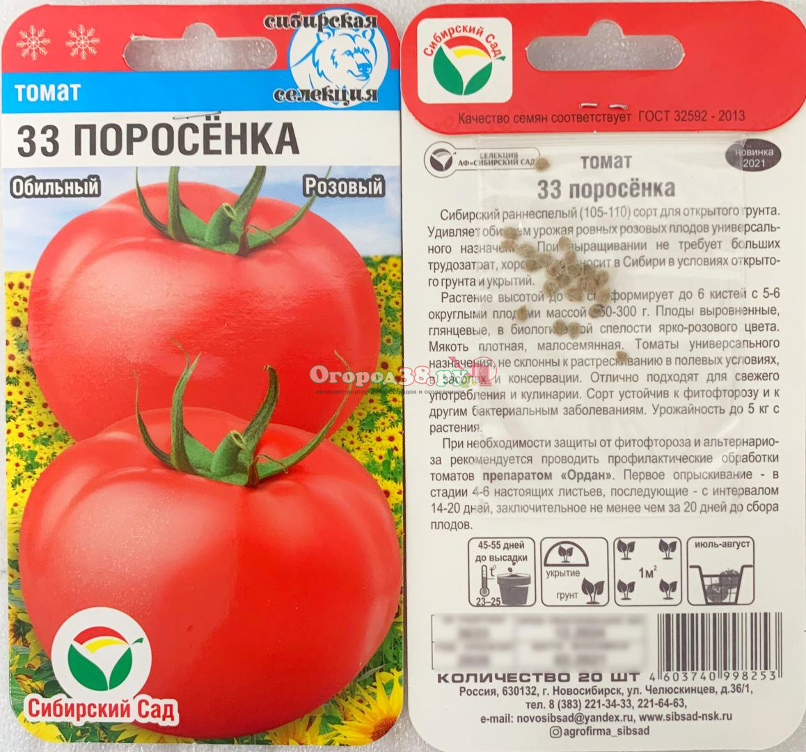 Томат 33 поросенка 20шт (о/г, до 300г) Акция!!! Цена со скидкой -50%