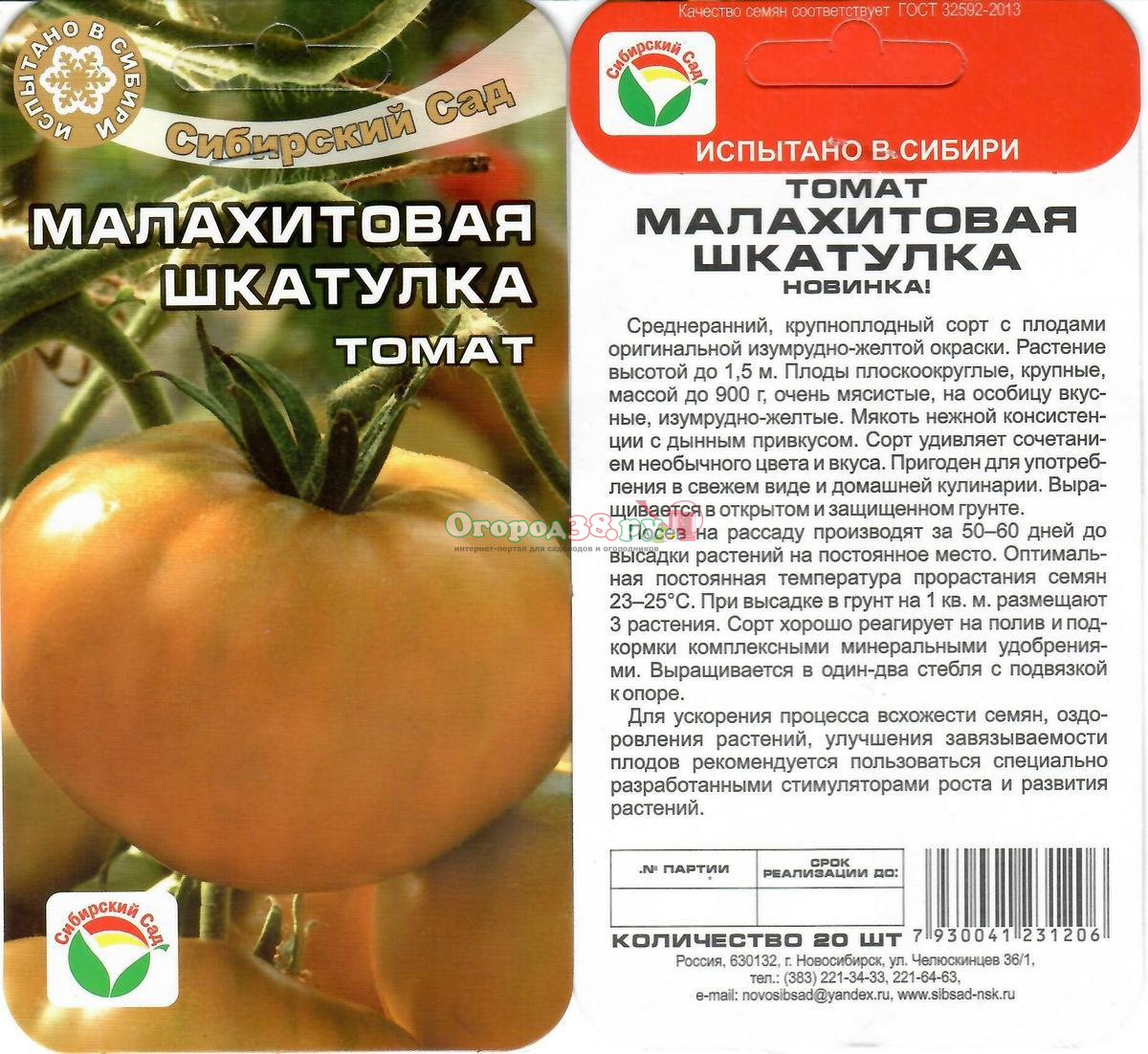 Томат Малахитовая шкатулка 20шт (до 900г)
