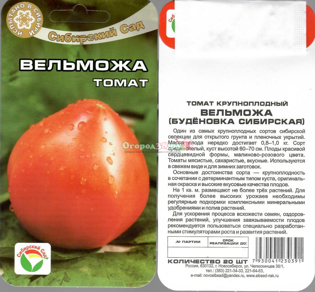 Томат Вельможа (Буденовка сибирская) 20шт (о/г, до 800г)