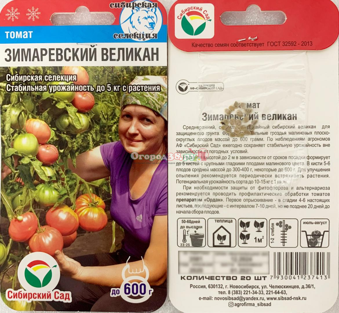 Томат Зимаревский великан 20шт малин (з/г, до 600г) Акция!!! Цена со скидкой -50%