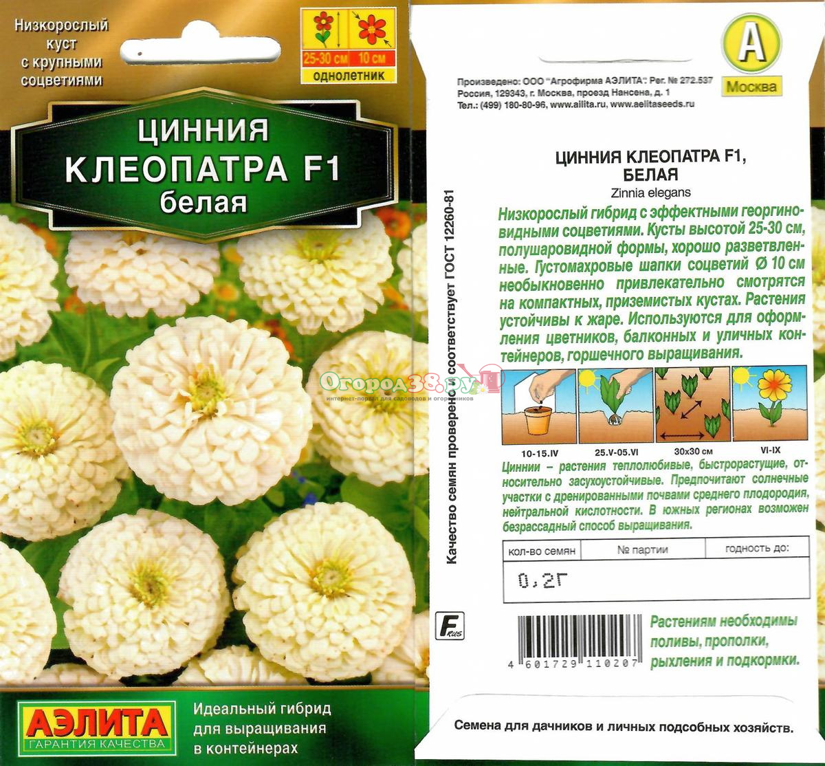 Цинния Клеопатра F1 Белая 12шт Италия (30-40см)
