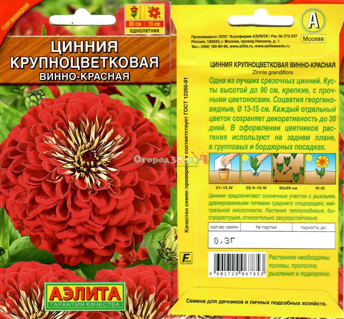 Цинния Крупноцветковая винно-красная, шт