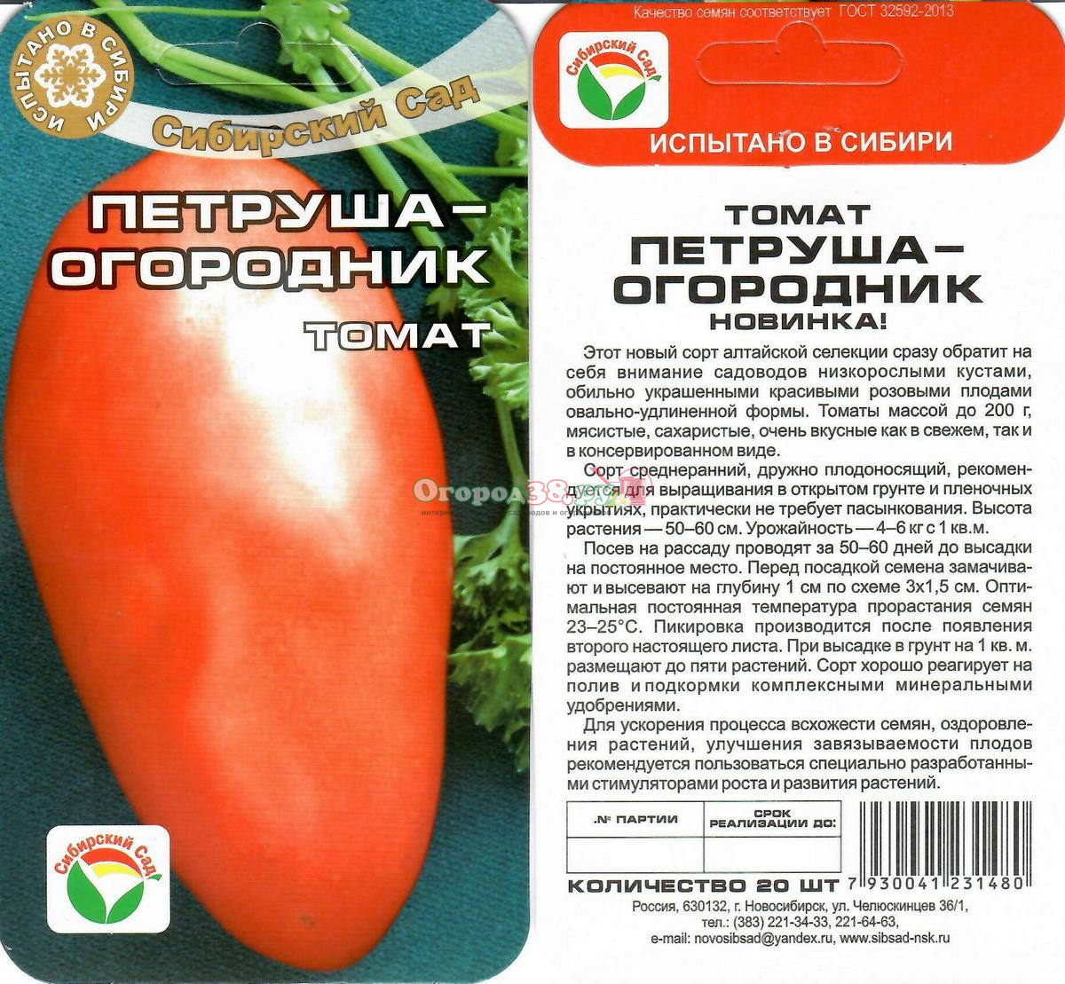 Томат Петруша Огородник 20шт о/г (ср/ран), 200г не пас, шт