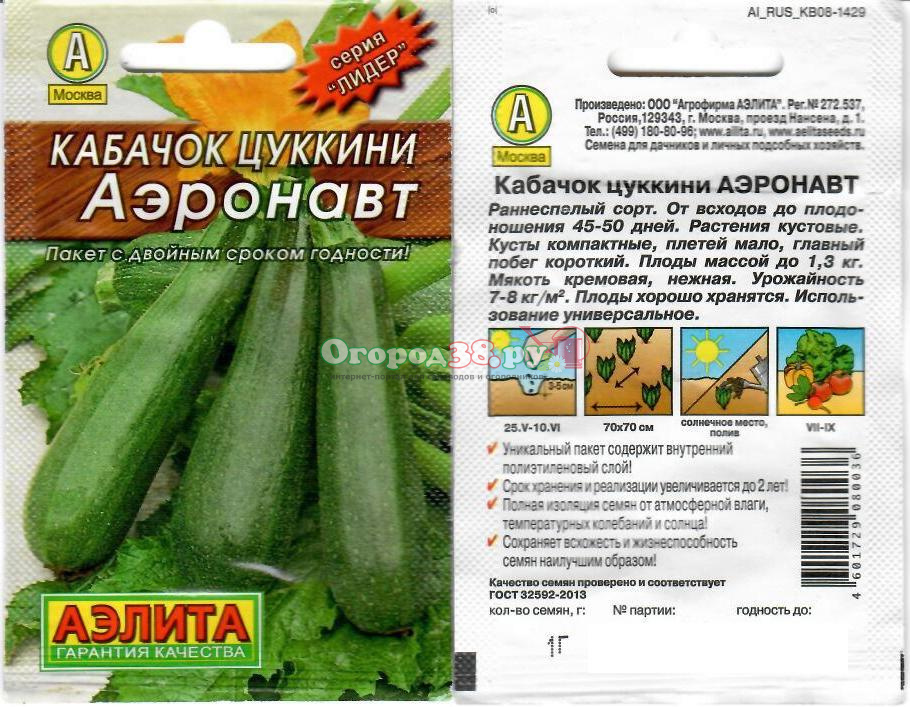 Кабачок Аэронавт цуккини (ран,куст) 10шт (Лидер)