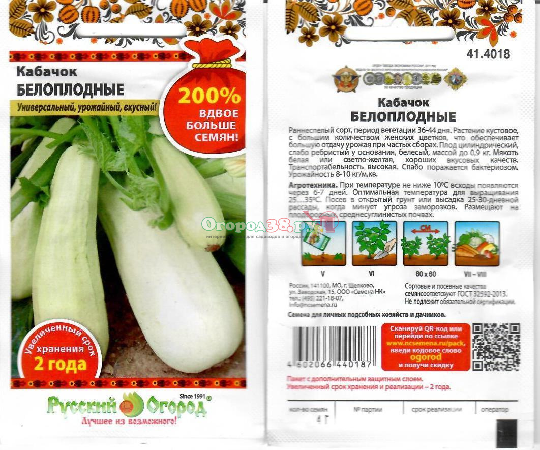 Кабачок Белоплодный 4г (ран, куст) 200%