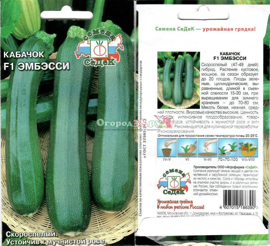 Кабачок Эмбэсси F1 1,5г (цуккини, зел.,ран, куст)